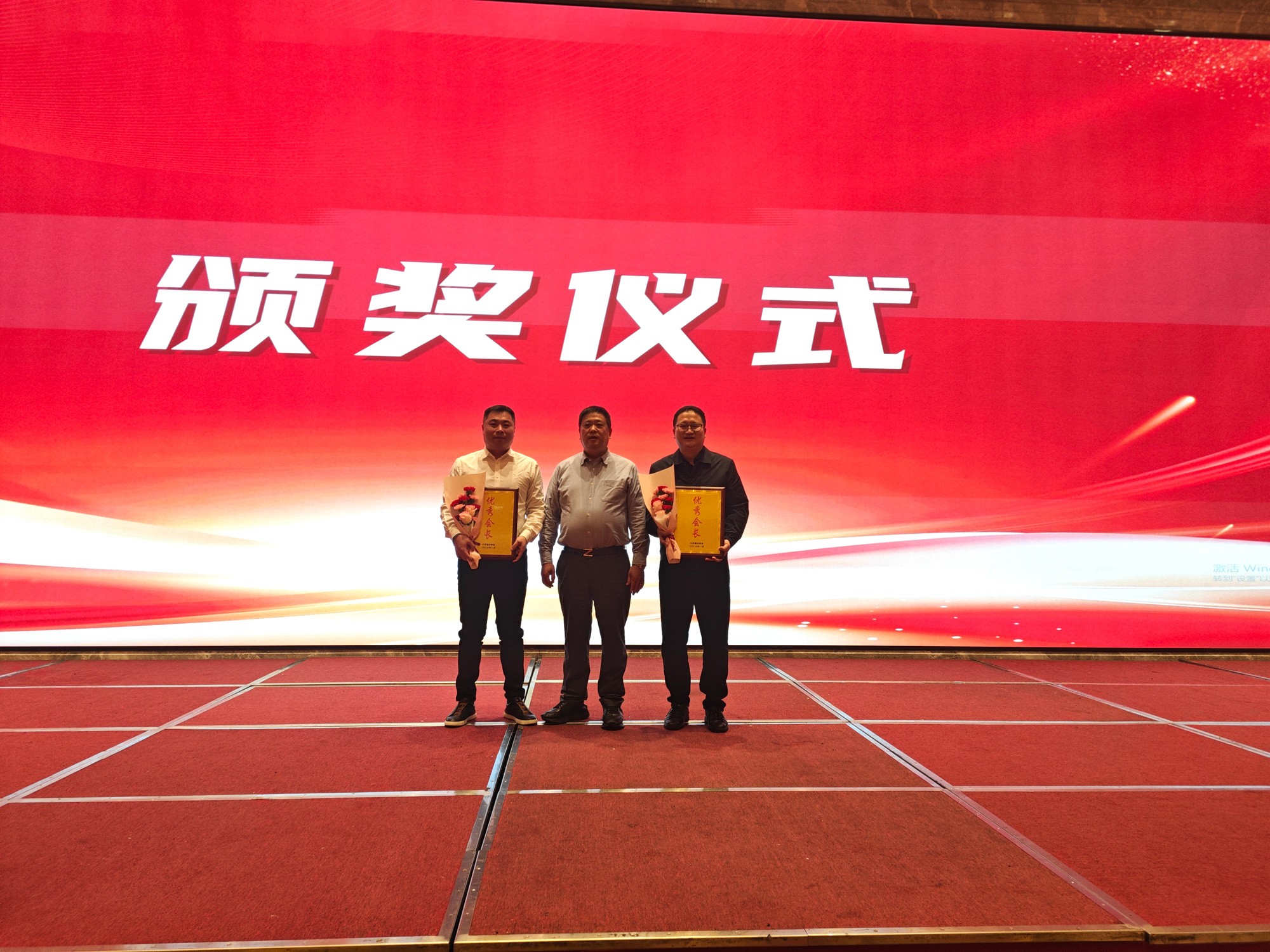 商会的发展离不开大家的付出和支持,商会对表现优异的成员进行表彰,首先是对优秀会长进行表彰,他们是赣州市温州商会会长朱绍兴、
