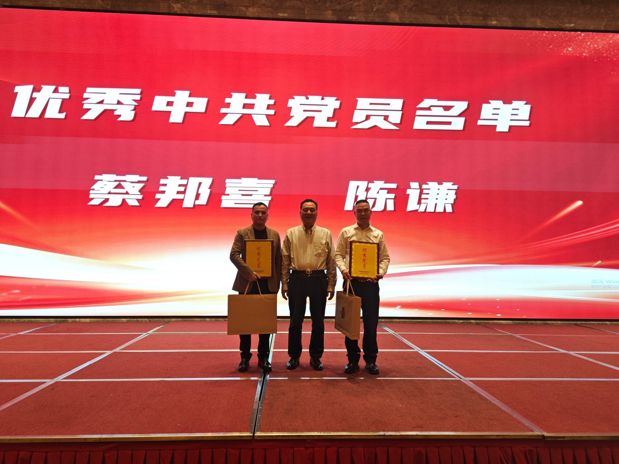 南昌温州商会党支部对优秀党员进行表彰,他们是蔡邦喜、陈谦两位党员,他们在对自身企业做强做大的同时,时刻牢记自己党员身份,对会员们遇到的困难总是及时伸出援助之手,对商会党建工作积极支持并多次提出合理化建议,充分体现一名共产党员先锋模范带头作用。