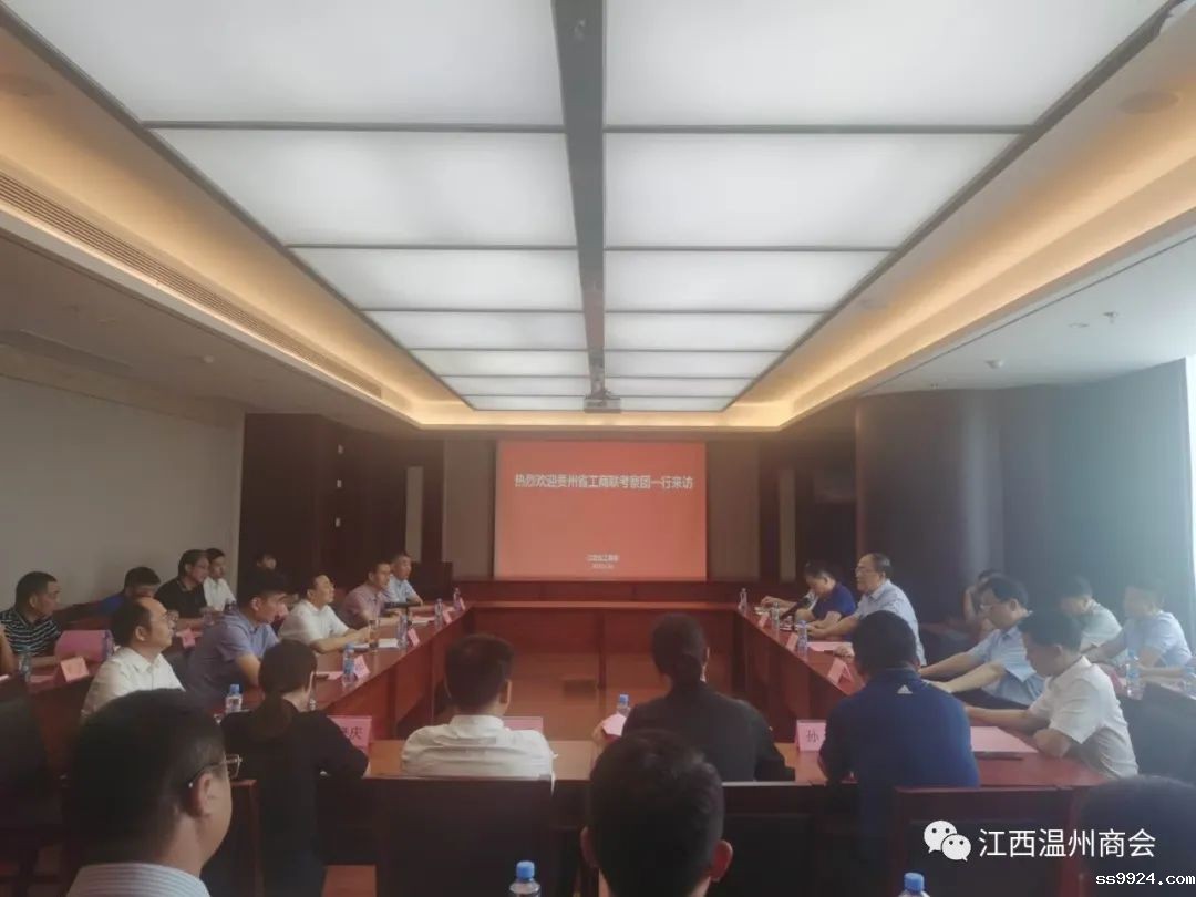 6月30日下午,由贵州省政协副主席、贵州省工商联主席李汉宇率领的贵州省各地市投资促进局及企业家代表一行人员来赣考察调研。江西省政协副主席、省工商联主席雷元江在同心谷商联中心接待了来访的客人,期间陪同客人参观了商联中心、观看了网上工商联并举行了座谈交流会。必威官方电竞APP副会长兼监事长蔡邦喜应邀出席了该活动。