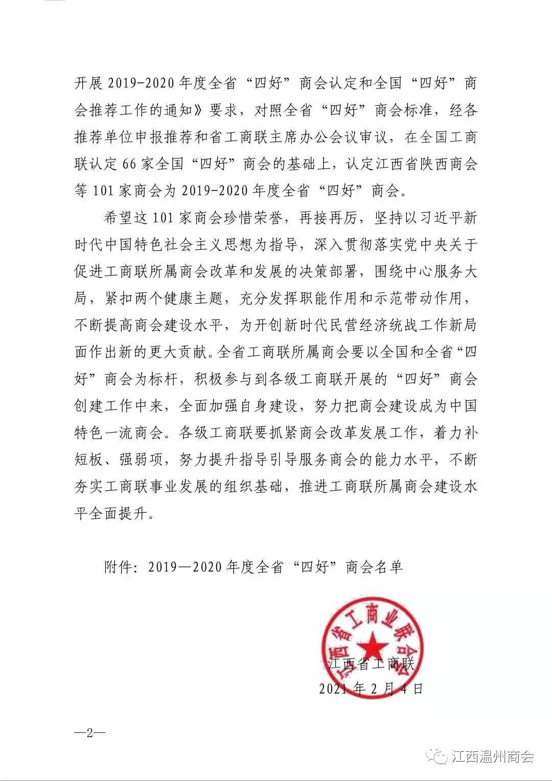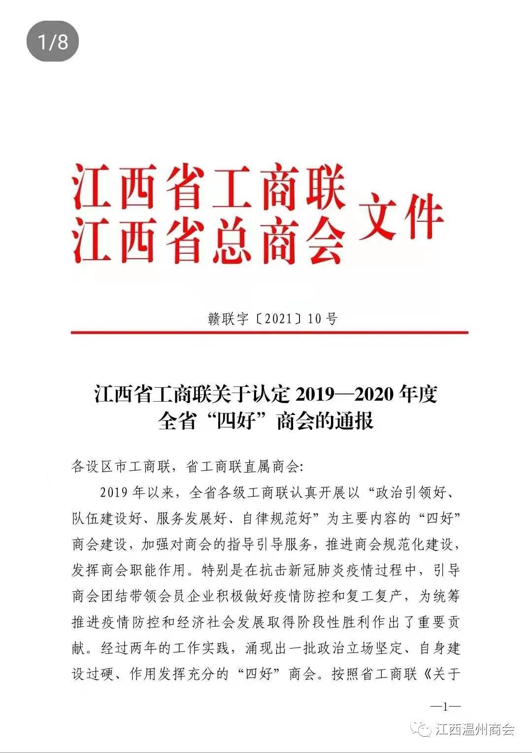 必威官方电竞APP、九江市温州商会、赣州市温州商会、新余市温州商会荣获2019-2020年度全省“四好”商会荣誉。