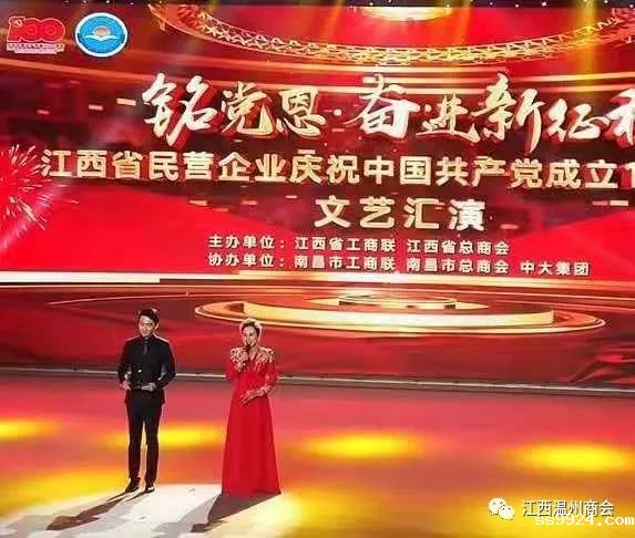 6月18日下午,由江西省工商联(总商会)主办的江西省民营企业庆祝中国共产党成立100周年文艺汇演在南昌举行。江西省人大常委会党组书记、副主任赵力平,江西省政协副主席、省工商联主席雷元江出席。