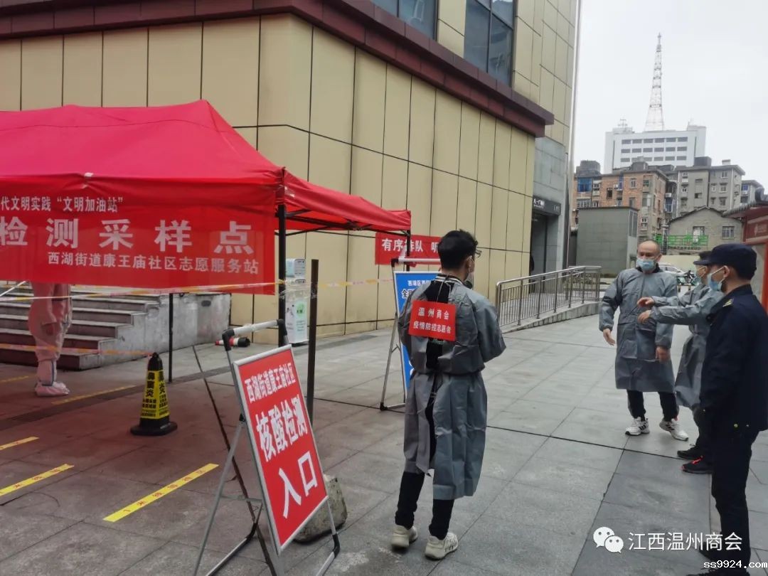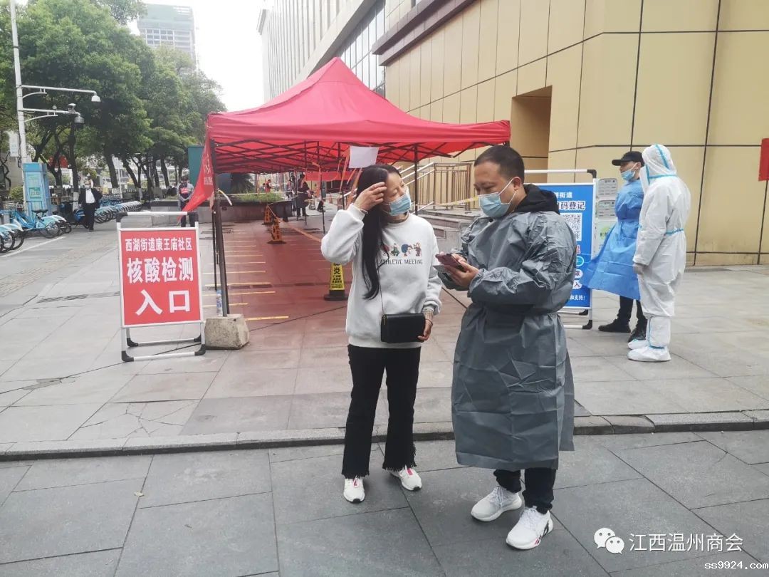 3月24日清晨7:00开始,南昌温州商会党支部的党员志愿者在必威官方电竞APP会长方永棣、书记吴振汉的带领下,组成志愿者服务队,从清晨7点准备,7点30分做好全员防护后、准时进入到西湖街办康王庙社区的抗疫一线点,与社区、街办、医护人员、民警等,共同担负起维持现场工作秩序和核酸检测工作,留下最美丽的瞬间。