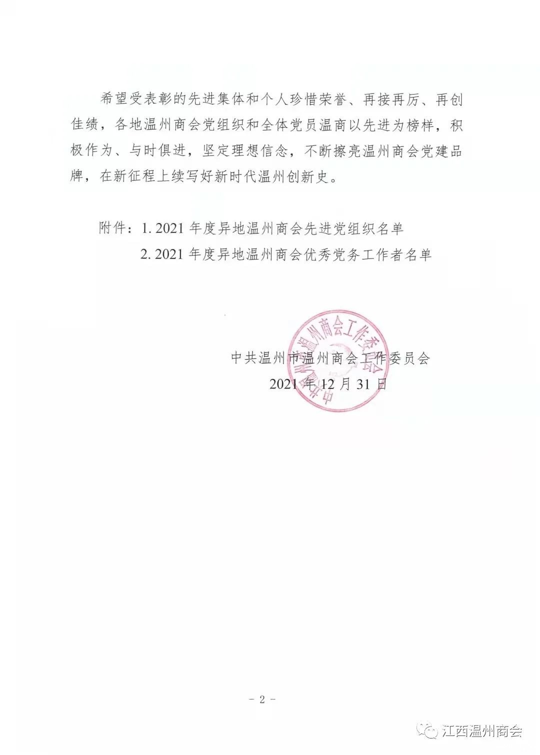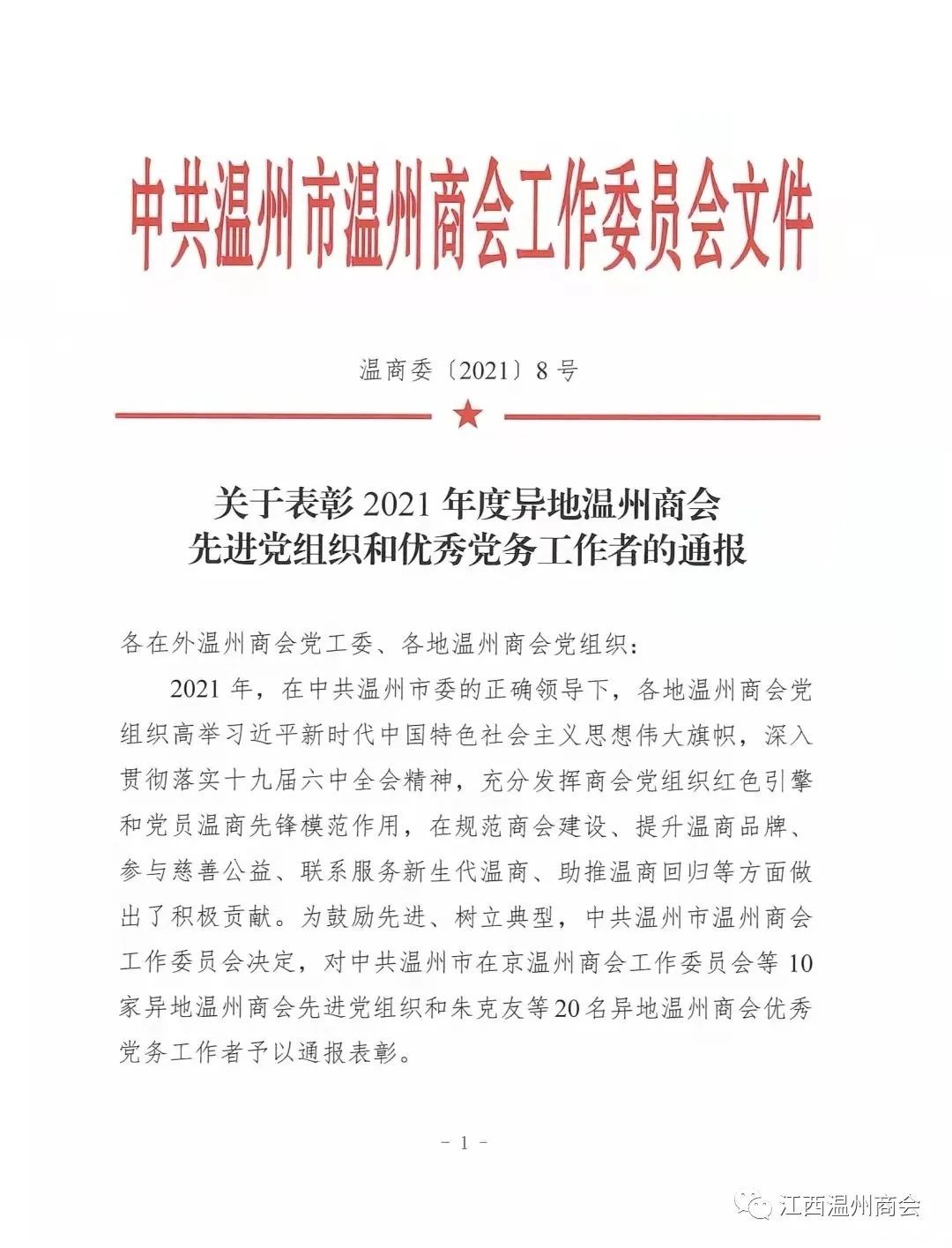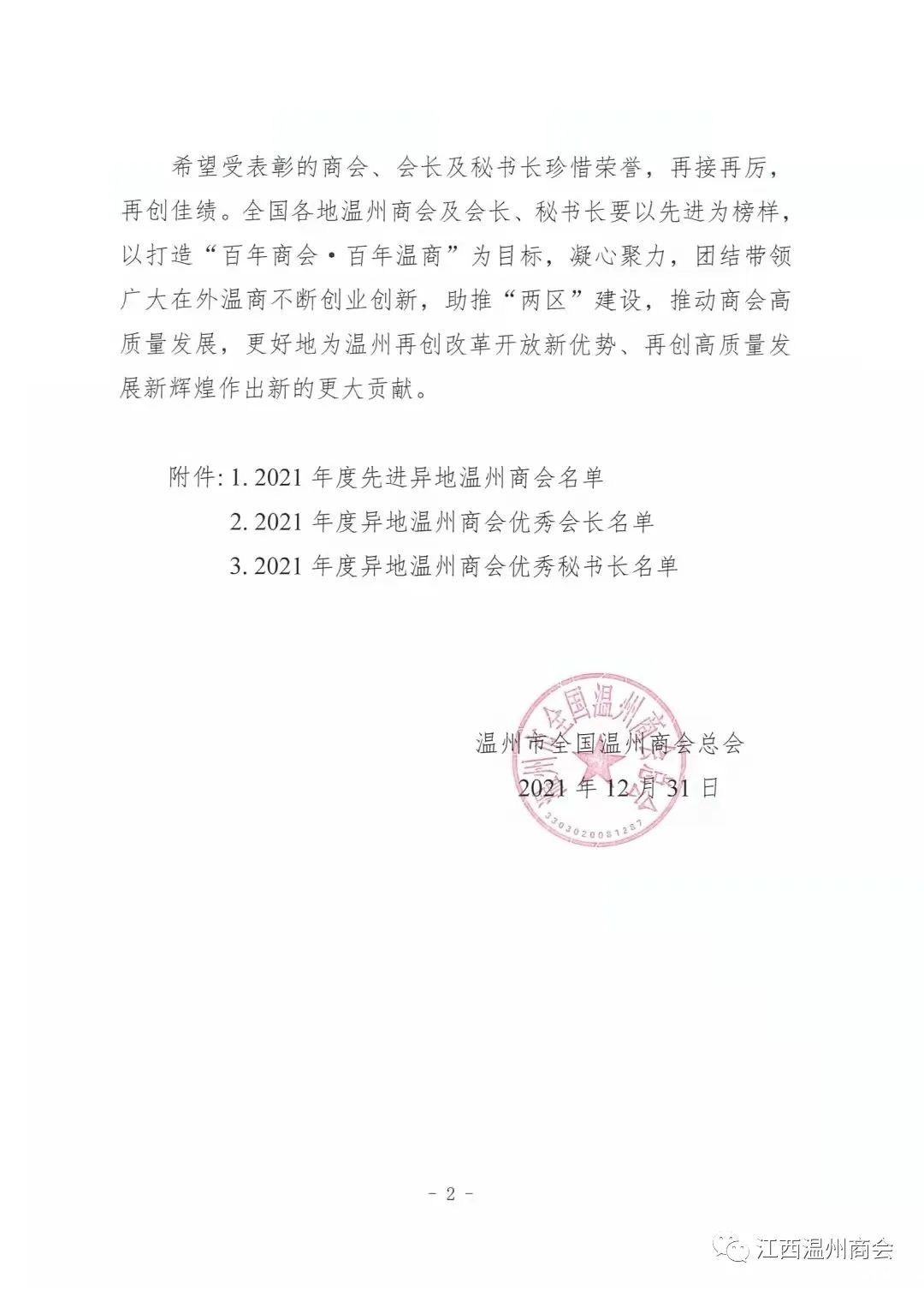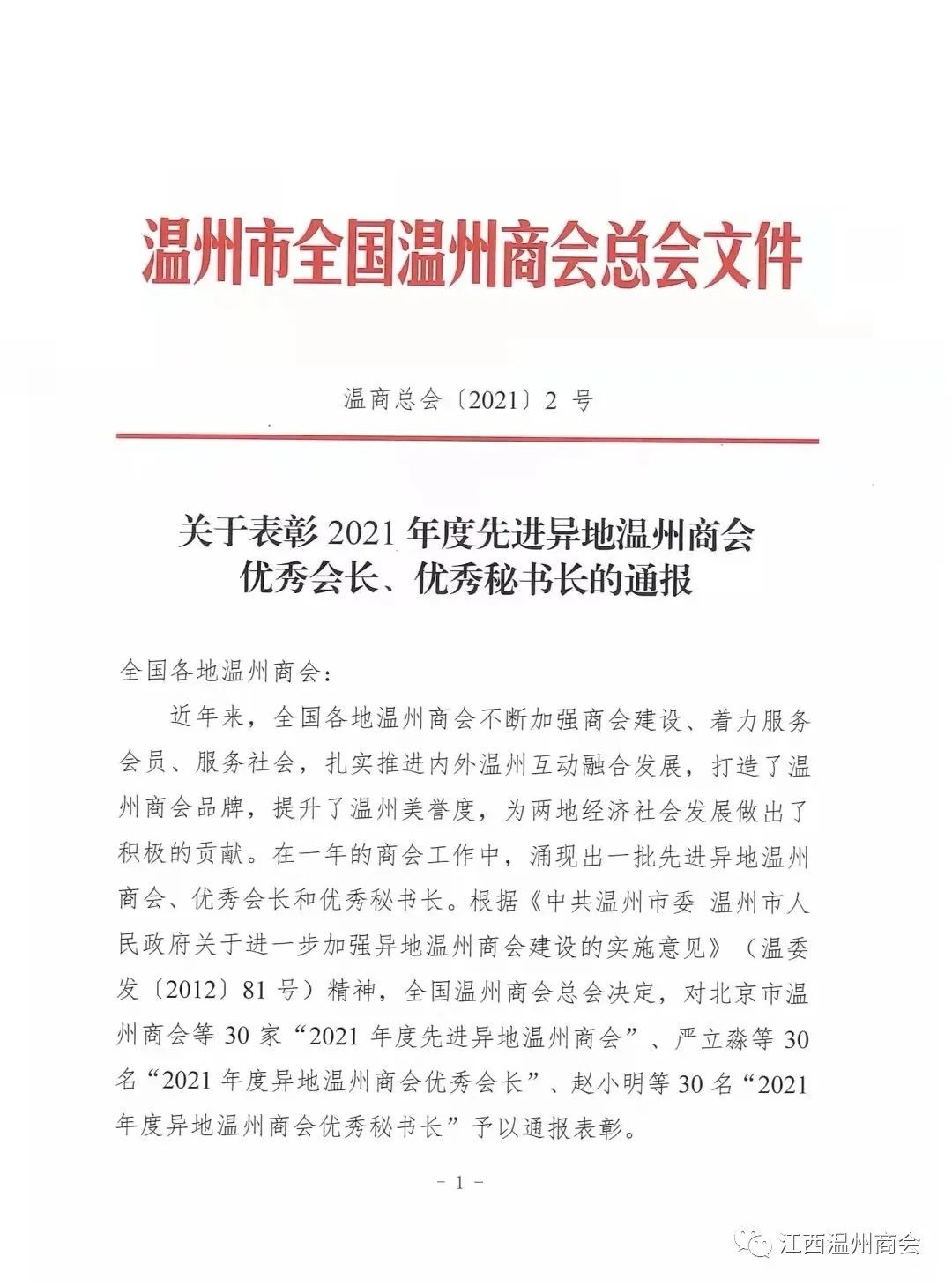 在此,表示热烈的祝贺!我们将以打造“百年商会、百年温商”为目标,凝心聚力,团结带领在赣温商不断创业创新,推动商会高质量发展。